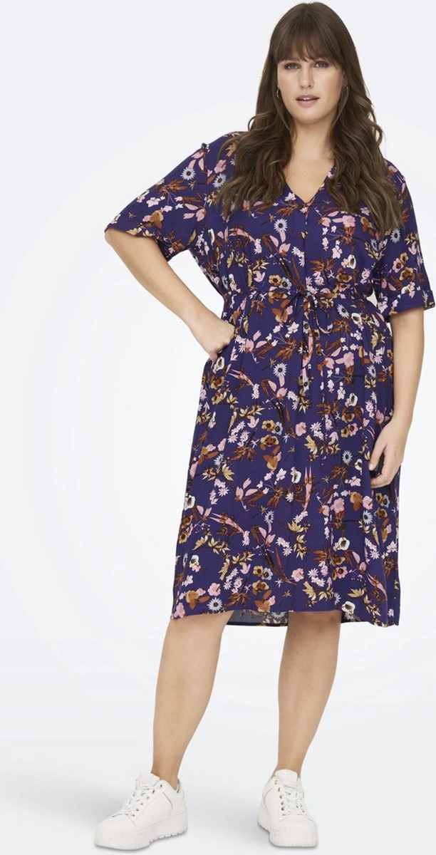 ONLY ECO jurk CARNOVA, Maat 50, met een advies prijs van: 39.99. ONLY Carmakoma ECO jurk CARNOVA is gemaakt in een ECO viscose stof met een mooie bloem print. De jurk heeft een V hals met daaronder een platte plooi en hij heeft korte mouwen. Er zit een losse tailleceintuur bij. De lengte van de jurk