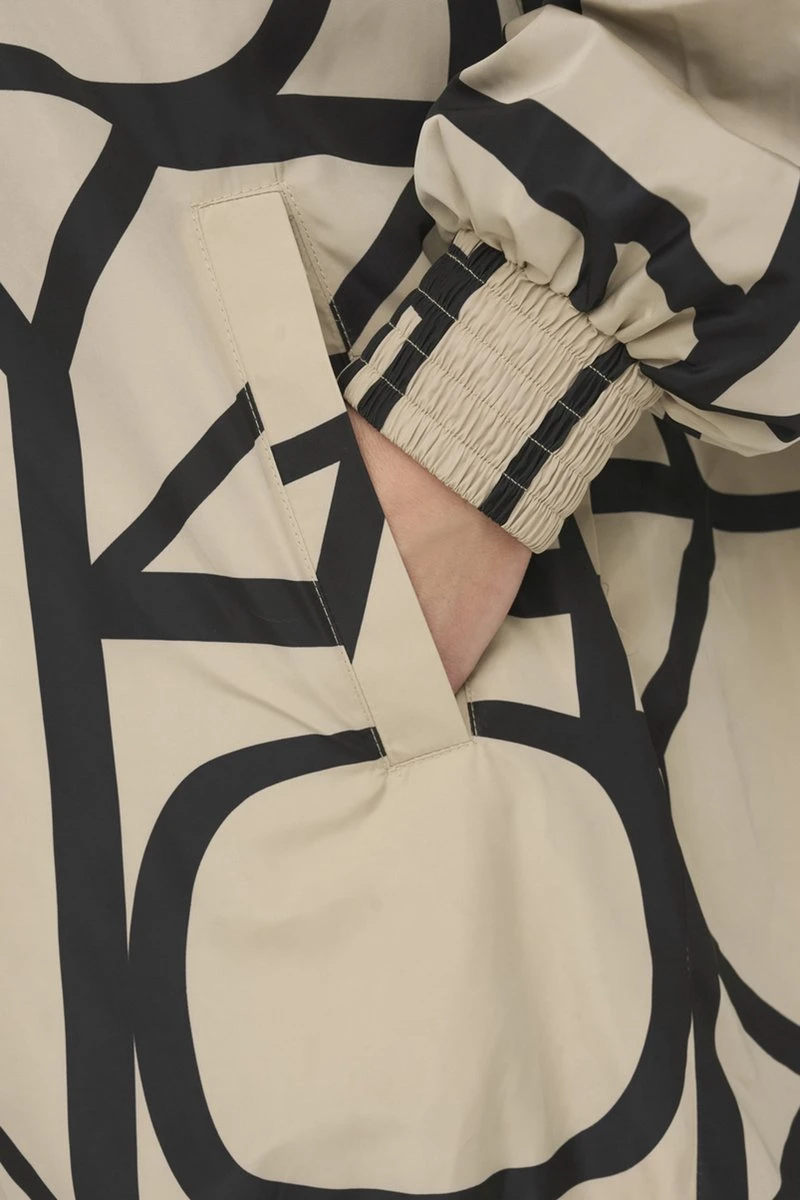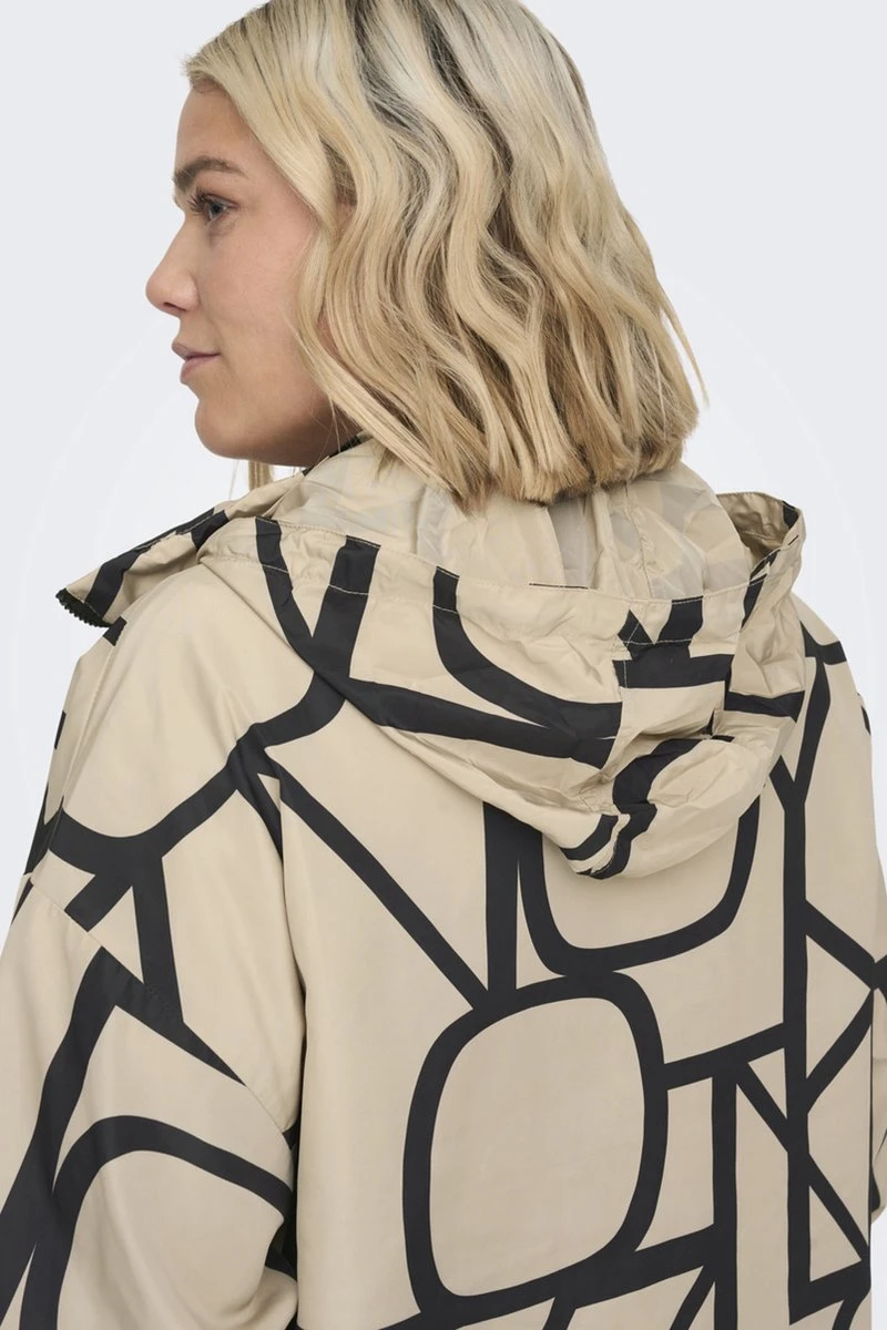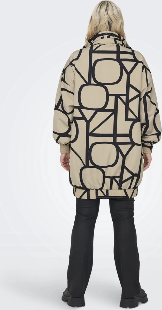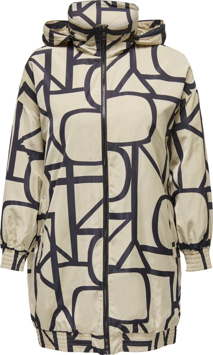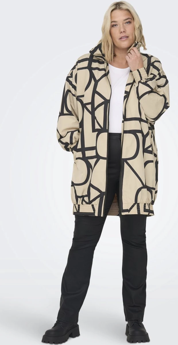 ONLY jas CARBETTY print, Maat M=46/48, met een advies prijs van: 59.99. ONLY CARMAKOMA jas CARBETTY heeft een grote grafische print. Hij heeft een rolkraag met rits met daarin een capuchon. Hij sluit met een groffe rits en is geheel gevoerd. De lange mouwen en aan de zoom, zit elastiek. Hij heeft