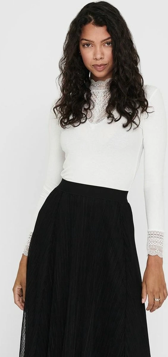 Only T-shirt Onltilde L/s High Neck Lace Top Jrs 15207788 Cloud Dancer Dames Maat – XL